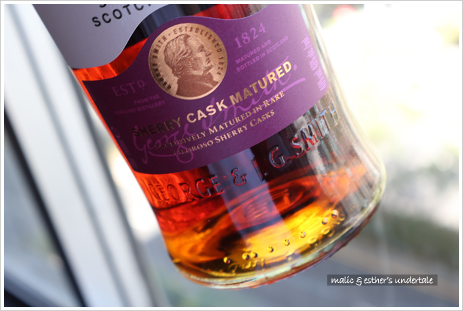 話不多說,馬上開酒。酒色是深沉的琥珀色,應該有經過焦糖著色 (E150a, Caramel Coloring) 處理。在 The Glenlivet 的官方 FAQ 中,有明確提到: