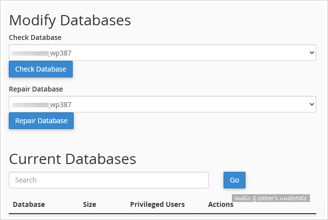 解法很簡單,實證可行。我登入虛擬主機商提供的管理介面 cPanel,然後找到 MySQL 資料庫頁面。此時只要先檢查 (check) 資料庫是否正常,然後再按修正 (repair) 該資料庫即可。警報解除。