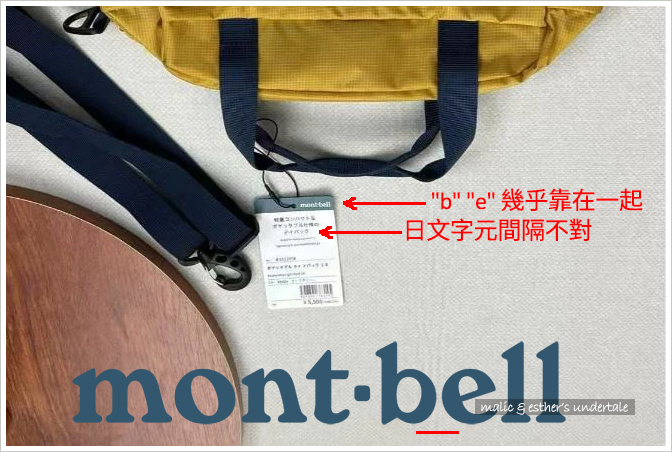 不過這年頭,詐騙無所不在。昨天 Esther 幫我網購的 Mont Bell 5L 小包到了。拆開一看,標籤上的字樣讓我起了疑心,因為 “B” 和 “e” 之間幾乎毫無間隙,和真正的商標不同。又吊牌上的敘述和品牌正品也不一樣,日文字看起來像是小畫家剪貼的 (間距不正確),更重要的是,價格和官網不同 (¥4,000 寫成 ¥5,800)。商品內的標籤同樣有問題,因為品名編號和正品照片不同。雖不算上一眼假,不過絕對不是正品。請 Esther 包裝起來退貨回去。假的真不了,再便宜也沒用。
