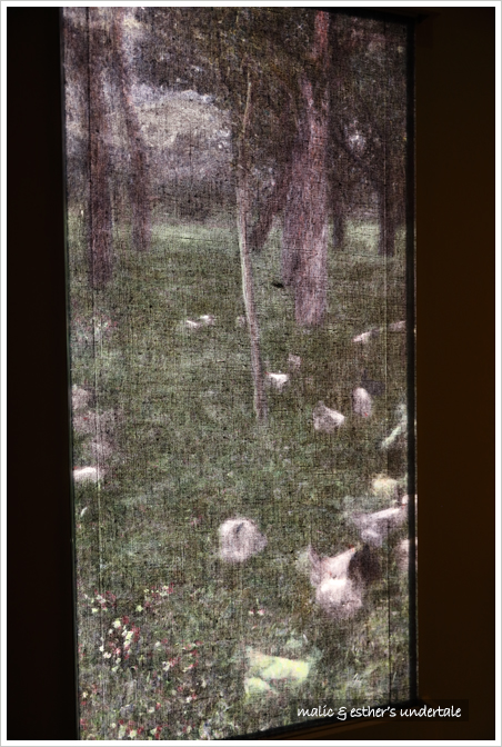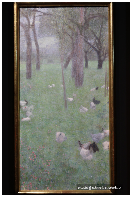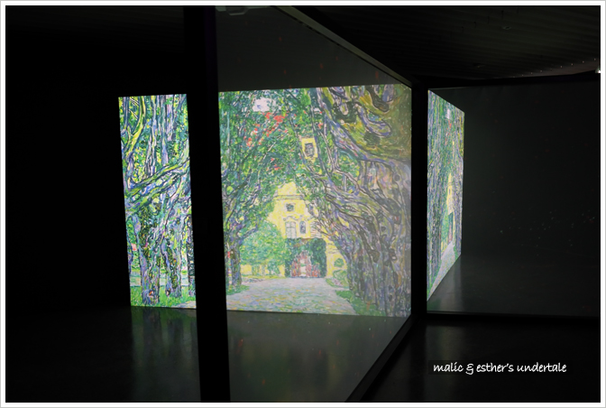 展覽位於在一、二樓,共分六個展區。拾步上樓後,開始的是中後期的作品,還專為克林姆打造了一個克林姆花園。我們隨著眾人在克林姆《雨後》(After the Rain) 駐足欣賞。可惜這是克林姆唯一來台的真跡,世人熟知的其他作品 (如《吻》(The Kiss) 等) 只以沉浸式影像呈現。