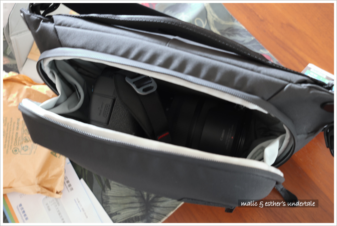 拆掉隔板,掛著大三元鏡頭的全幅機身可以穩穩放入包裡。沒有撞壞保護鏡的擔憂,肩帶也是可以貼合肩膀的角度,總算拍照的裝備又齊了。滿心期待好天氣,可以背著新裝備走來走去。
