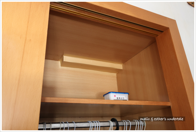 家裡這個衣櫃是雙面的,兩個房間都各有櫃門。緊急處理後,雖然接得到主臥這一側的滲水,但遠處兒子房間那一角還是積水嚴重。我又折了幾支曬衣架,套上塑膠袋,勉強在狹小的空間裡架起接水網,盡可能將滲水導進托盤。那些連手電筒都照不到的地方,只能讓它繼續滴了。